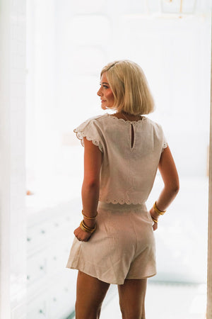 This is the perfect summer set! We love the embroidered top and the cute shorts.