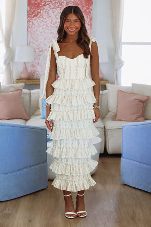 She's Stunning Floral Midi Dress - Light Yellow