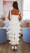 This floral printed bustier midi ruffle dress is perfect. We love the ruffles, built in padded bra and self tie shoulder straps.