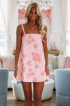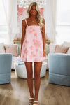 This floral stitched mini dress has braided shoulder straps and is so trendy!