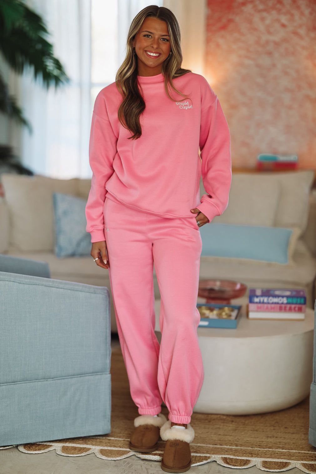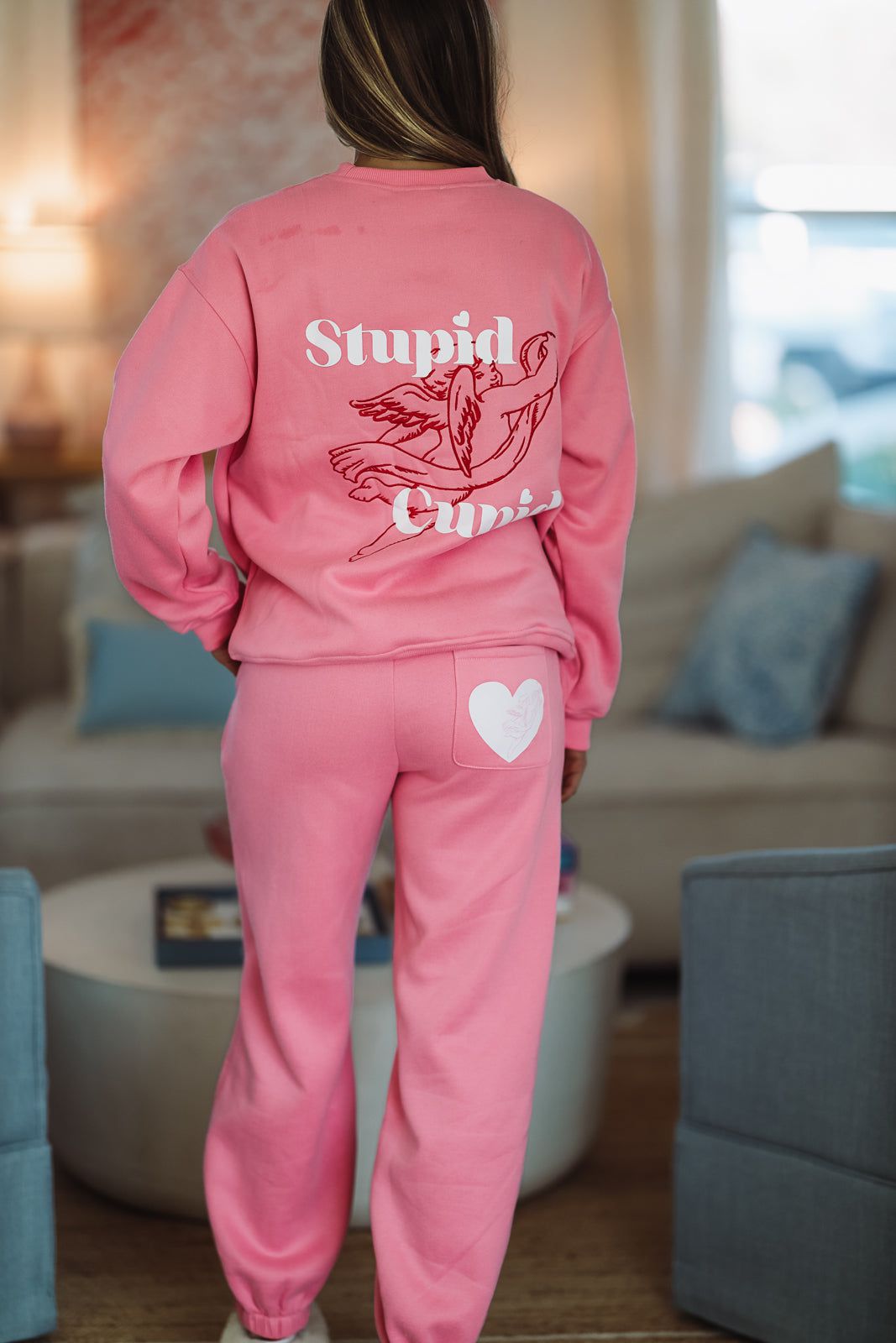 We love this sweatshirt with Stupid Cupid embroidered on the front and a cherub embroidered on the back.