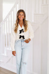 Sweet as Sugar Bow Sweater - Oatmeal and Black