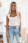 Sweetheart Ribbed Knit Top - White