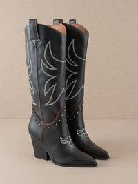 Take Me Downtown Western Cowboy Boots - Black and Red