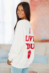 This sweatshirt has one perfect heart on it and says I love you baby on the back! We love this pullover crewneck
