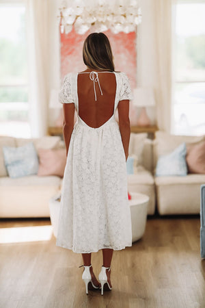 This eyelet lace deep v bubble sleeve maxi dress is stunning!
